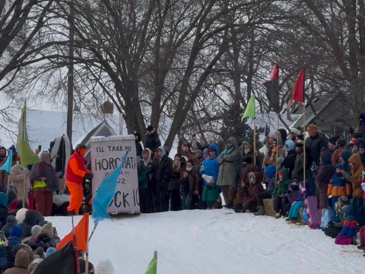 Even though my car has broken down for the second time in two weeks, I am making plans to take the light rail to the rally. I am borrowing gloves and gaiters and long johns from friends. By the time you’re reading this, I’ll be one of the people on a bullhorn tomorrow with my fellow TCUP organizers leading the crowd in singing songs and chants, in English and Spanish, as we march the long mile to downtown in the cold. At -40°, it only takes minutes for frostbite to set in, and usually coating our skin in vaseline would be enough to help. But with ICE gleefully spraying teargas into the faces of even the most passive of legal observers, we can’t chance a substance that makes chemicals stick. I’m gonna scope out the pharmacy tonight for some moleskin to cover my nose and my cheeks, and dig out some trash bags to cover my feet.